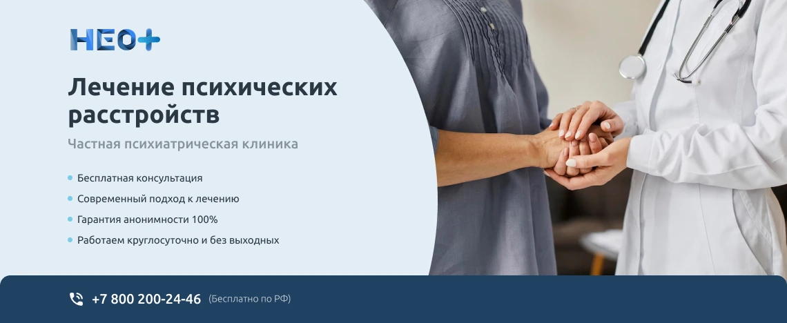Записаться на прием к врачу-психиатру можно на официальном сайте клиники «НеоПлюс» в Пионерском или по телефону ☎️ +7 (800) 200-24-46. Звоните нам, не запускайте проблему. Мы знаем, как вернуть здоровье и покой в Вашу семью!